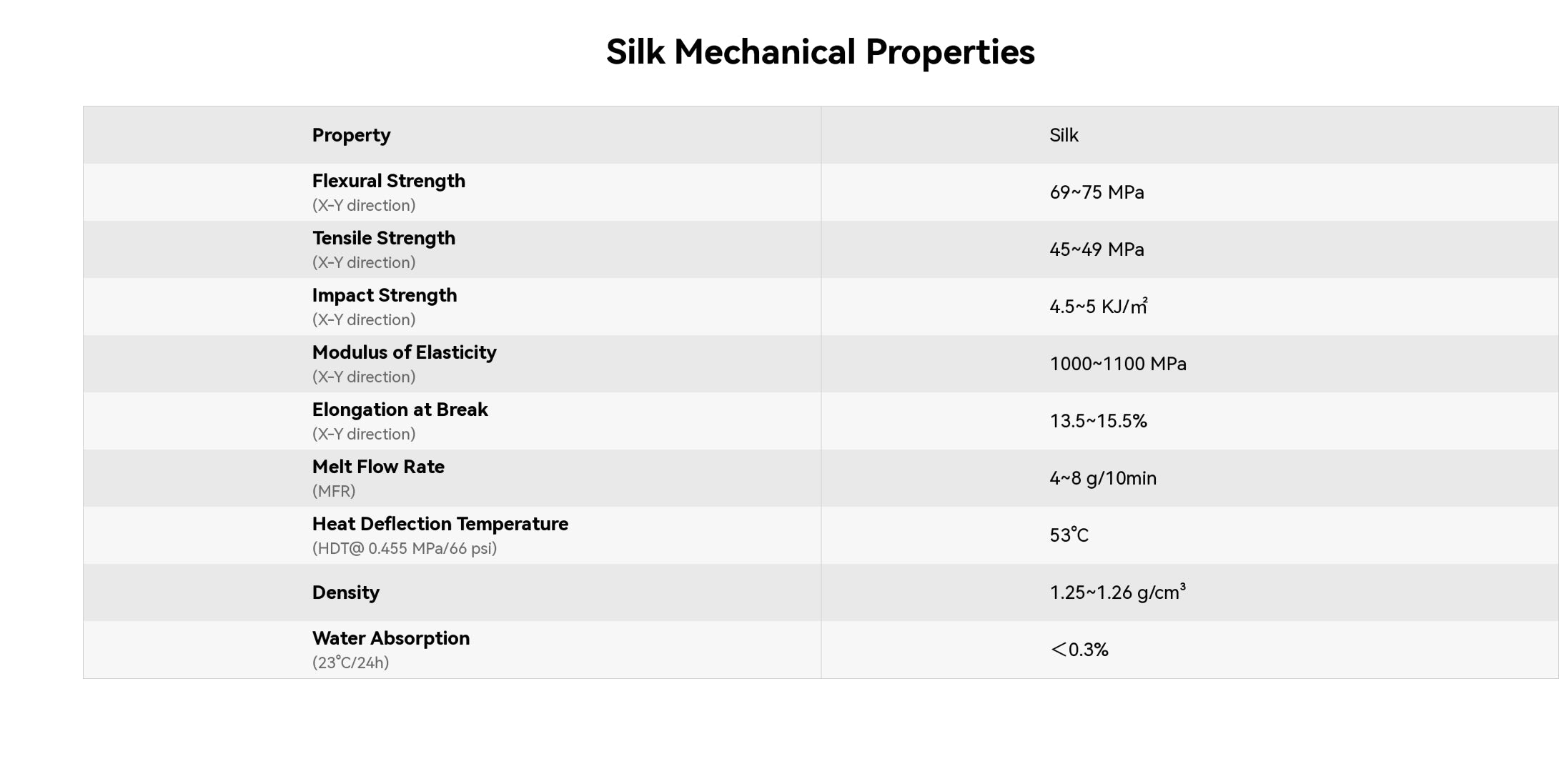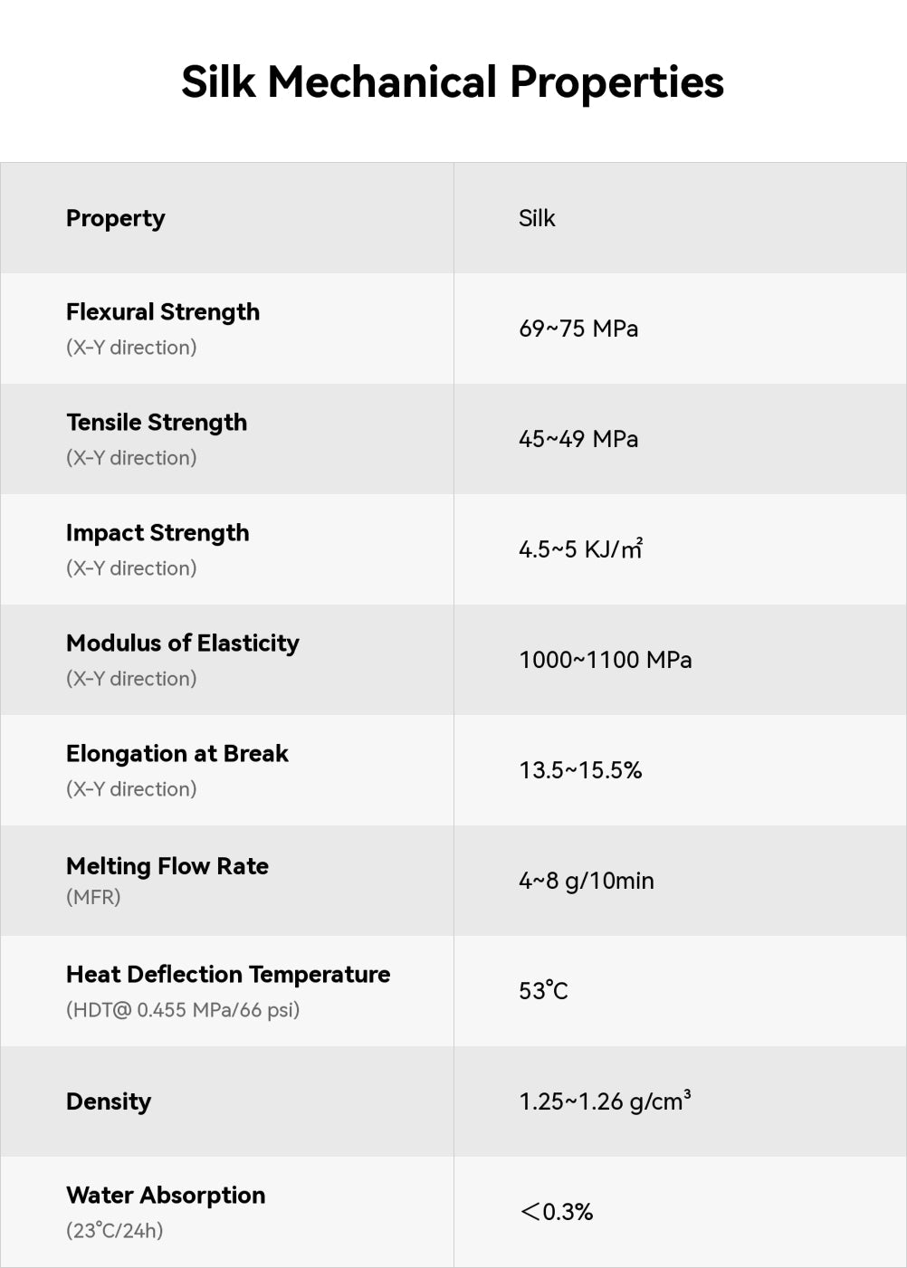 These parameters are recommended for achieving optimal printing results with the specified Silk series. Adjustments may be necessary based on specific printer models and environmental conditions.